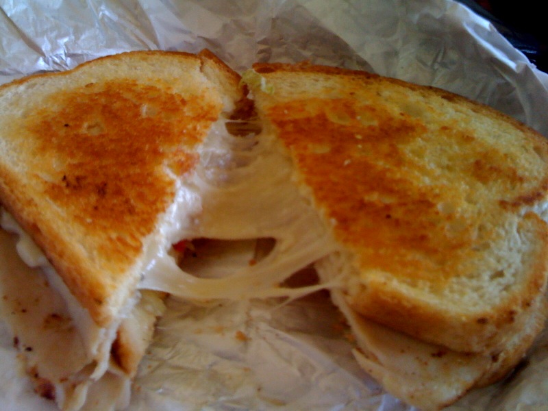 After a few minutes, I got my sandwich and headed home to dive in. When I unwrapped it and pulled it apart, the cheese just kept stretching; so much delicious looking swiss cheese that I finally had to pull it apart with my fingers. When I took the first bit, I was pleasantly surprised. The turkey was very flavorful and moist, not heaping, but not skimping either. The cheese was as expected, very gooey. But added to that was a bit of onion and freshly sliced tomato. This provided a little crunch and a little unexpected flavor boost. The whole thing was served on a nicely toasted sourdough bread that just brought the whole thing together.
