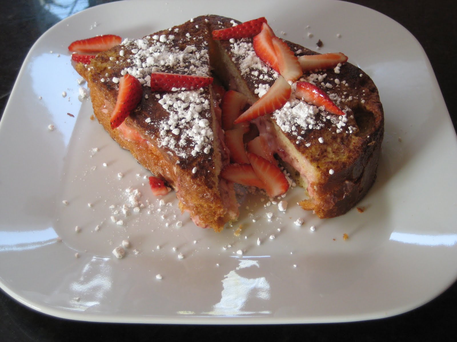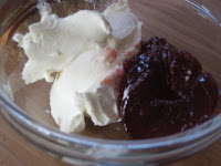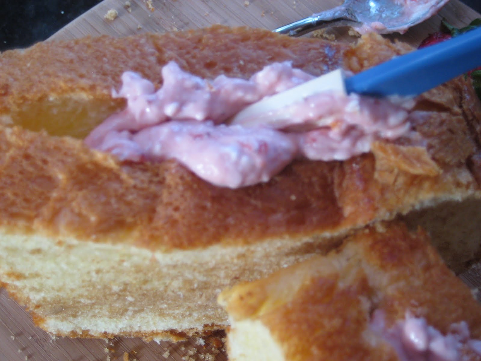 Step 2: Mix the cream cheese and jam together. Then using a spoon or small, thin spatula, put half of the cream cheese mixture into each slice. You want to try and get it as evenly distributed within the slice as possible. Next add the fresh, diced strawberries to the slice, again using a spoon or spatula to distribute them throughout the pouch.