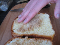 Step 4: Take the brown sugar and sprinkle on the outside of each slice. Work the brown sugar into the bread with your fingers. Flip each slice over and repeat.