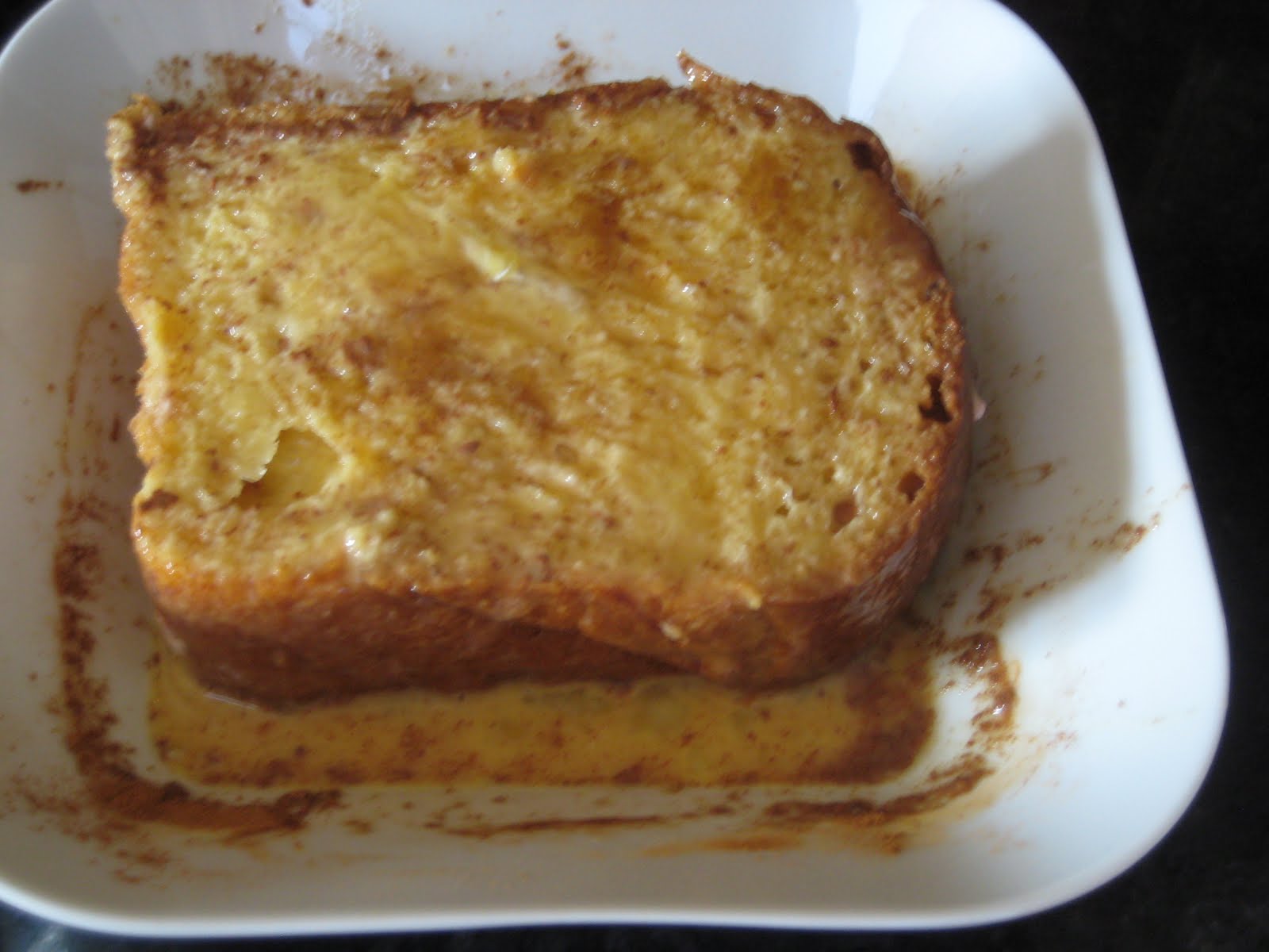 Step 3: In a skillet or griddle, melt the butter slowly over medium heat. While the butter is melting mix together the eggs, milk, cinnamon and vanilla in a bowl or shallow dish large enough for the entire slice to fit into.