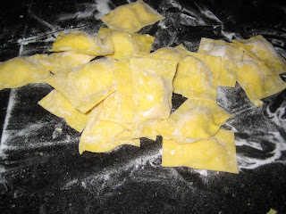 The end result probably isn't what Chef Symon is capable of producing, or would be expecting based on the recipe. The ricotta filling seemed a little dry and just off tasting. I haven't quite figured out how to pick out a good ricotta. And the sauce didn't quite get to a "brown" butter state. I know there is a fine line between brown and burned, and I definitely erred on the side of not cooking long enough. It left the whole dish feeling a little overly rich. But, there was one bright spot; the pasta. It was actually light and delicious, and I was definitely surprised. I think the biggest problem was that even though I used "Large" eggs, the yolks were actually pretty small, and I probably should have used a full dozen. I ended up compensating with water which was ok. The nice thing is that I now know that I can make pasta, and will probably make a lot more of my own when I do pasta meals like chicken parmesan. It really doesn't take that long, and with all things, practice makes perfect! And then I can start adding different flavors to the pasta like spinach or sun-dried tomato or any number of things... :-)